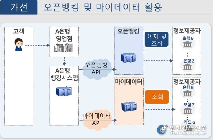 [인천광역신문] 관리자 기자 | 금융위원회는 11월 19일부터 웹 · 모바일 등 온라인 방식으로만 제공되던 오픈뱅킹·마이데이터 서비스를 은행 영업점에서도 이용할 수 있도록 서비스 제공 채널을 확대한다. 이날 권대영 금융위원회 부위원장은 시중은행·지방은행과 함께 은행 영업점 현장을 방문해 동 서비스가 원활히 시행될 수 있도록 실시 상황을 점검했다.