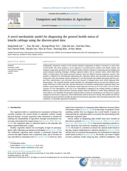 한편, 연구 결과는 올해 10월호 농업 분야 국제학술지 ‘컴퓨터스 앤 일렉트로닉스 인 애그리컬쳐(Computers and Electronics in Agriculture)(논문인용지수 8.9)’에 실려 학술적으로 인정받았다.