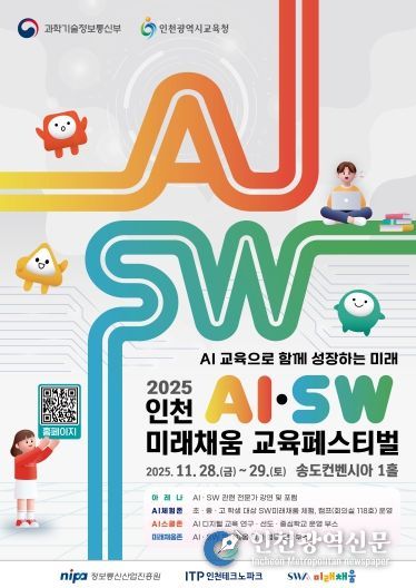 [인천광역신문] 최예준 기자 | 인천테크노파크(인천TP)는 오는 28일과 29일 이틀간 송도 컨벤시아 전시1홀에서 ‘2025년 인천AI·SW미래채움 교육페스티벌’을 개최한다.