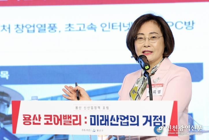 박희영 용산구청장은 ‘리부트 용산’을 주제로 한 기조연설에서 “전자상가 일대를 AI·ICT 중심지로 전환하고, 창업·교육·연구가 집적되는 도시 모델을 만들겠다”고 밝혔다. 국제업무지구 개발과의 연계를 통해 용산 코어밸리를 미래산업의 중추로 키우겠다는 구상이다.