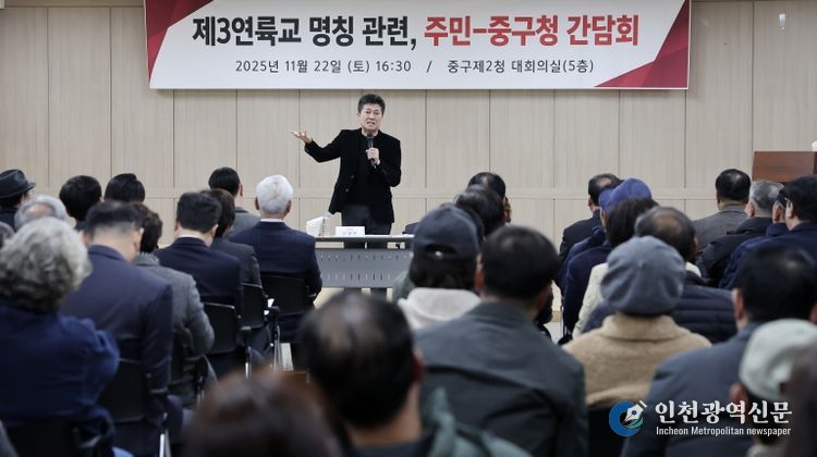 김정헌 중구청장은 지난 22일 오후 중구 제2청 대회의실에서 영종·용유 지역 주민 등 100여 명이 함께한 가운데 열린 ‘제3연륙교 명칭 관련 주민-중구청 간담회’에서 이 같은 뜻을 밝혔다.