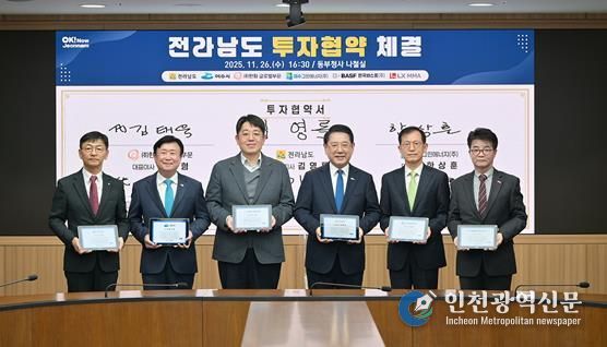 [인천광역신문] 관리자 기자 | 여수시는 지난 26일 전라남도 동부지역본부 나철실에서 전라남도와 여수그린에너지㈜, ㈜한화 글로벌부문, ㈜LX MMA 등과 총 1조 2,441억 원 규모의 투자협약을 체결했다고 밝혔다.