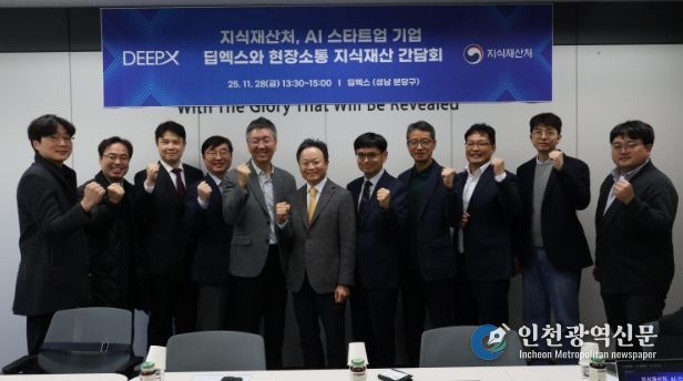 [인천광역신문] 관리자 기자 | 지식재산처는 11월 28일 13시 30분, 인공지능 반도체 전문기업 딥엑스(경기 성남시)를 방문하여 인공지능 연구 개발자들과 현장소통 간담회를 개최했다고 밝혔다.