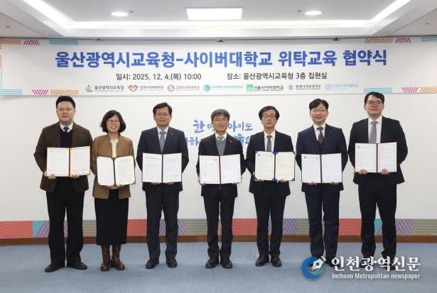 [인천광역신문] 관리자 기자 | 울산광역시교육청은 4일 10시 집현실에서 사이버대학 6곳과 교직원 위탁교육 활성화를 위한 업무협약을 맺었다.
