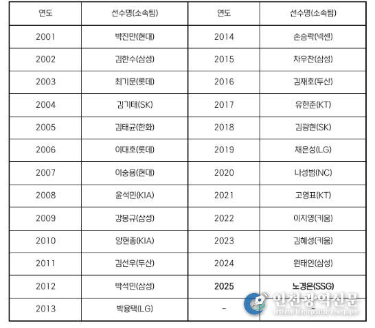 [인천광역신문] 관리자 기자 | KBO는 12월 1일(월) 상벌위원회를 열고 2025 KBO 페어플레이상 수상자로 SSG 노경은을 선정했다.