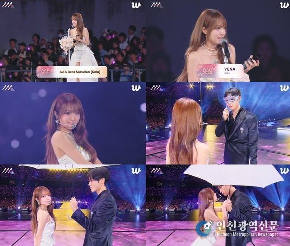 [인천광역신문] 관리자 기자 | 가수 최예나(YENA)가 'AAA' 베스트 뮤지션 상을 수상, 추영우와 설렘 퍼포먼스로 존재감을 드러냈다.