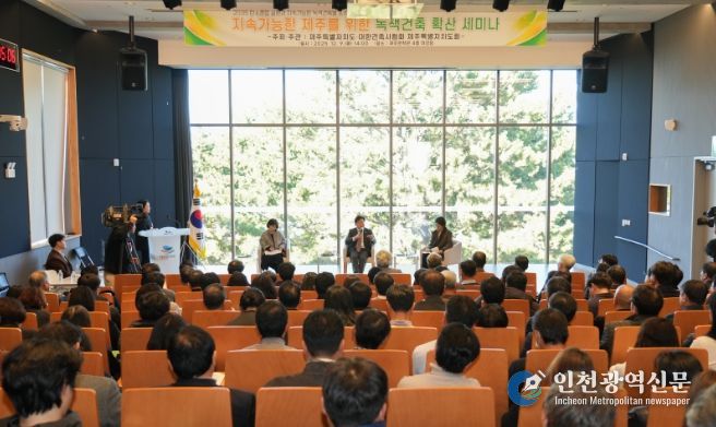 제주도는 9일 제주문학관에서 녹색건축의 확산 전략과 지방정부의 정책 역할을 논의하는 ‘지속가능한 제주를 위한 녹색건축 확산 세미나’를 개최했다.
