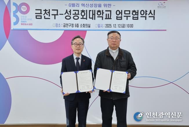 [인천광역신문] 관리자 기자 | 금천구는 G밸리 혁신성장을 위해 지난 12일 금천구청 소회의실에서 성공회대학교와 업무협약을 맺었다고 밝혔다.