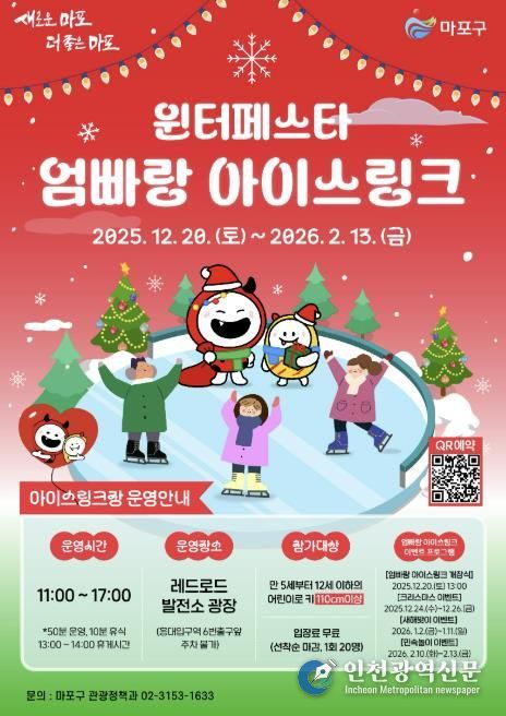 [인천광역신문] 박진 기자 | 마포구는 겨울을 맞아 레드로드 발전소 광장에 ‘윈터페스타 엄빠랑 아이스링크’를 조성하고 12월 20일 개장한다.