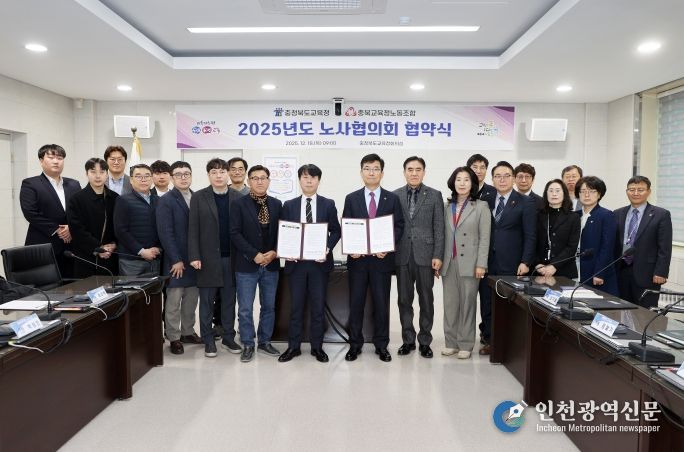 [인천광역신문] 관리자 기자 | 충청북도교육청은 18일 오전, 본관 회의실에서 충북교육청노동조합(위원장 유여종)과 2025년도 노사협의회 합의안에 대한 협약식을 개최했다.