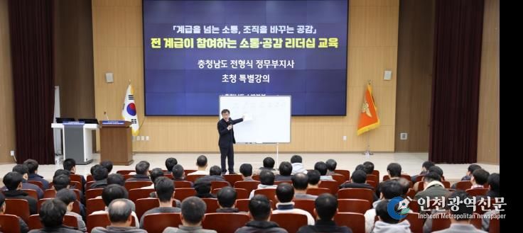 [인천광역신문] 관리자 기자 | 충남소방본부는 18일 충청소방학교 대강당에서 전 계급이 함께하는 ‘소통·공감 리더십 교육’을 진행했다.