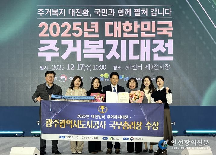[인천광역신문] 박진 기자 | 광주도시공사(사장 김승남)는 17일 서울 양재 aT센터에서 열린 ‘2025 대한민국 주거복지대전’에서 주거복지 향상 및 서민 주거안정에 기여한 공로를 인정받아 국무총리 표창을 수상했다고 밝혔다.
