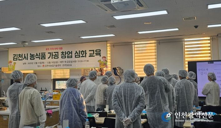 [인천광역신문] 박진 기자 | 김천시는 12월 19일 오후, 김천시농업기술센터 농촌생활교육관 조리실습실에서 ‘2025년 김천시 농식품 가공 창업 심화 교육’ 수료식을 성황리에 개최했다.