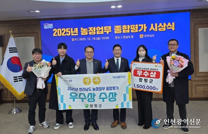 함평군은 지난 19일 전라남도청 서재필실에서 열린 2025년 전남 농정업무 종합평가에서 우수상을 수상했다고 22일 밝혔다.