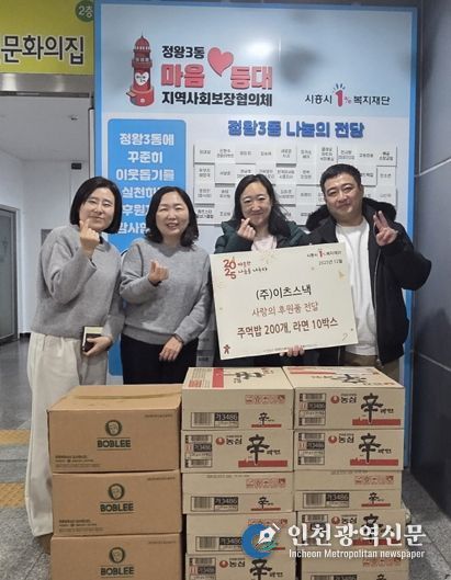 [인천광역신문] 박진 기자 | ㈜이츠스낵은 지난 12월 19일 정왕3동 지역사회보장협의체를 찾아 저소득 결식 우려 가구를 위한 주먹밥 200개와 라면 10상자를 전달했다.