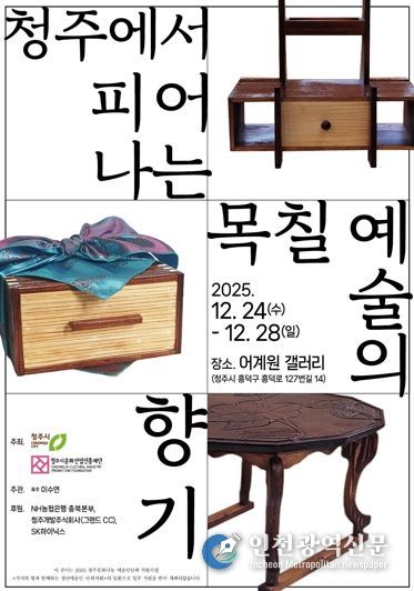 [인천광역신문] 박진 기자 | 청주시문화산업진흥재단은 오는 24일 운천동에 위치한 어계원 갤러리에서 청년 작가 이수연의 개인전 ‘청주에서 피어나는 목칠 예술의 향기’가 개막한다고 밝혔다.