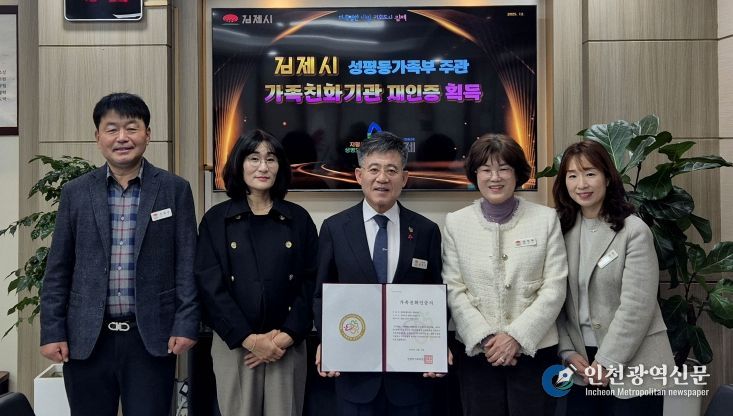 [인천광역신문] 박진 기자 | 김제시는 성평등가족부 주관‘가족친화 인증기관’재인증을 획득해 가족친화적 직장문화를 선도하는 지자체로 인정받았다고 밝혔다.