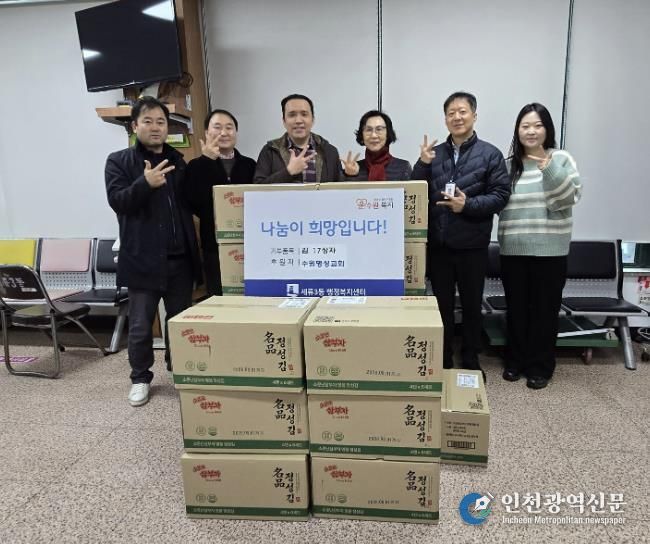 [인천광역신문] 박진 기자 | 수원명성교회는 지난 19일 수원시 권선구 세류3동 행정복지센터에 김 17 상자를 전달하며 취약계층을 위한 나눔을 실천했다고 밝혔다. 전달된 김은 관내 저소득 가구와 도움이 필요한 이웃들에게 배부될 예정이다.