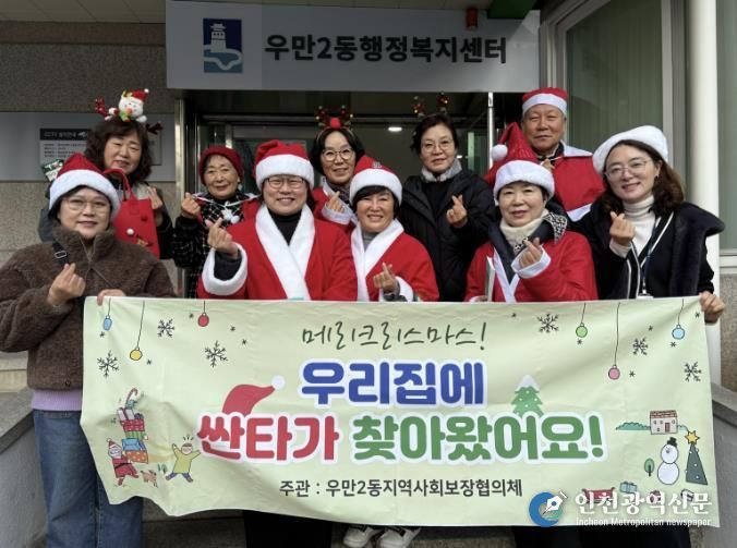 [인천광역신문] 박진 기자 | 수원시 팔달구 우만2동 지역사회보장협의체는 지난 19일, 연말을 맞아 관내 한부모 등 저소득 아동 5가구를 대상으로 ‘장미마을 산타와 메리 크리스마스’ 행사를 진행했다.
