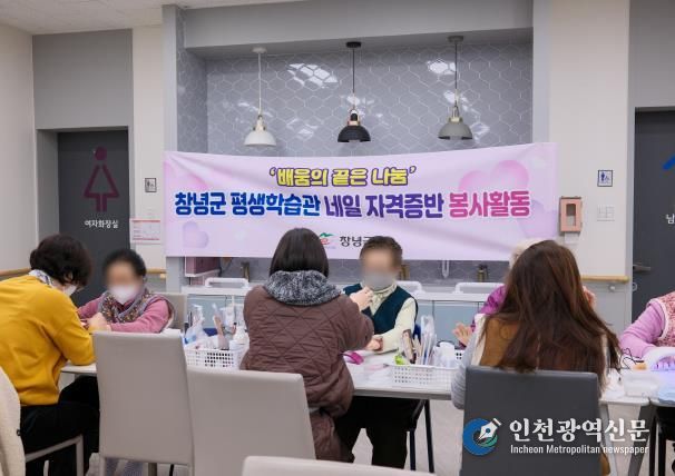 [인천광역신문] 박진 기자 | 창녕군은 지난 13일과 20일 양일간 창녕읍 소재 주간보호센터에서 어르신 30여 명을 대상으로 손·발톱 정리 봉사활동을 진행했다고 밝혔다. 이번 봉사에는 평생학습관 네일 자격증반 수강생 9명과 강사 1명 등 총 10명이 참여했다.