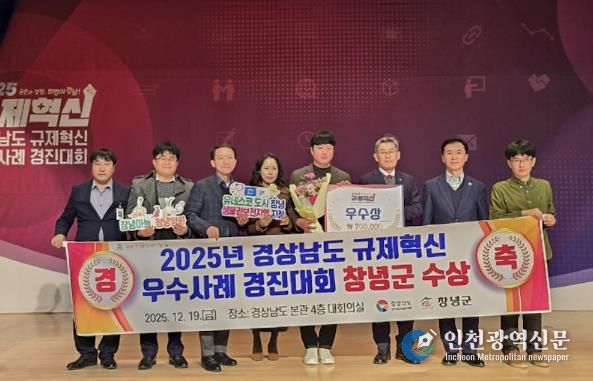 [인천광역신문] 박진 기자 | 창녕군은 지난 19일 열린 경상남도 주관 '2025년 경상남도 규제혁신 우수사례 경진대회'에서 지역경제활력 제고 분야 우수사례로 우수상을 받았다.