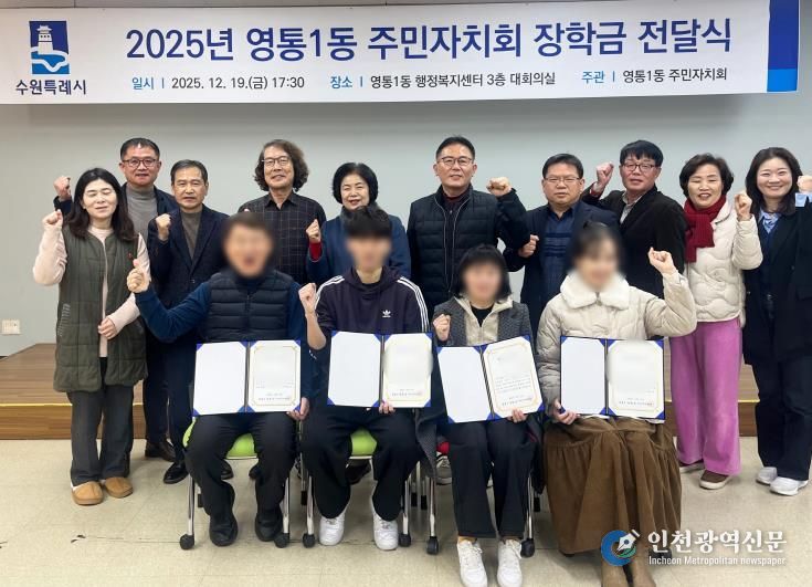 [인천광역신문] 박진 기자 | 수원시 영통구 영통1동 주민자치회는 지난 19일, 지역의 미래를 이끌어갈 우수한 인재들을 격려하기 위해 ‘꿈과 희망의 장학사업’을 실시했다.