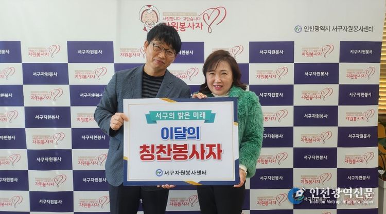 [인천광역신문] 박진 기자 | 인천서구자원봉사센터는 지역사회 발전을 위해 여러 분야에서 다양한 봉사활동에 참여한 자원봉사자를 격려하고 자원봉사 문화를 확산하기 위한 ‘자원봉사 칭찬릴레이’를 매월 실시하고 있다.