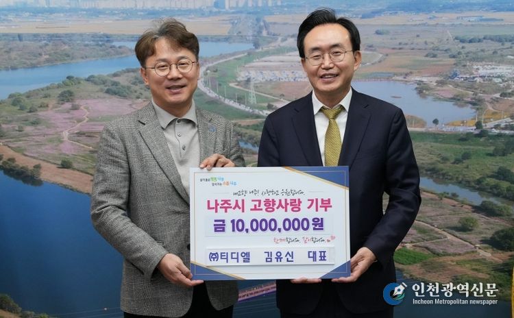 [인천광역신문] 박진 기자 | 전라남도 나주시는 ㈜티디엘 김유신 대표가 지역 발전을 응원하기 위해 고향사랑기부금 1천만 원을 기탁했다고 22일 밝혔다.