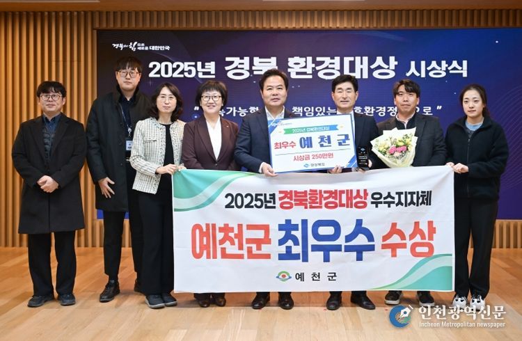 [인천광역신문] 박진 기자 | 예천군은 22일 경상북도 주관 ‘2025년 경북환경대상’ 평가에서 최우수상을 수상하며 환경 전반에 걸친 우수한 정책 추진 성과를 인정받았다.