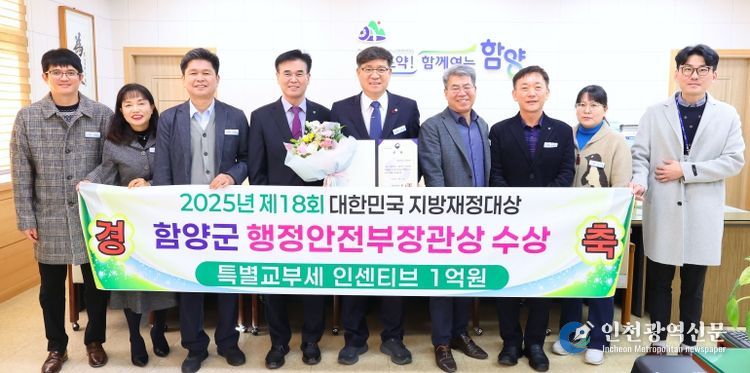 [인천광역신문] 박진 기자 | 함양군이 행정안전부가 주관하는 ‘2025년 제18회 대한민국 지방재정대상’에서 우수사례로 선정돼 행정안전부 장관상을 받으며, 특별교부세 1억 원을 확보했다.