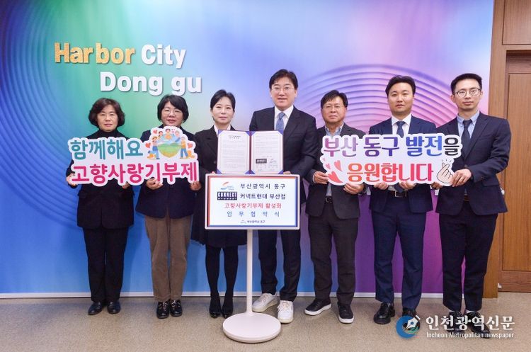 [인천광역신문] 박진 기자 | 부산 동구는 지난 18일 커넥트현대 부산점(점장 천동욱)과 고향사랑기부제 활성화를 위한 업무협약을 체결했다고 밝혔다.