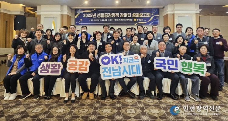 [인천광역신문] 박진 기자 | 전라남도는 22일 목포 폰타나비치호텔에서 ‘2025년 전라남도 생활공감정책 참여단 성과보고회’를 열어 생활밀착형 제안 성과들을 공유했다고 밝혔다.