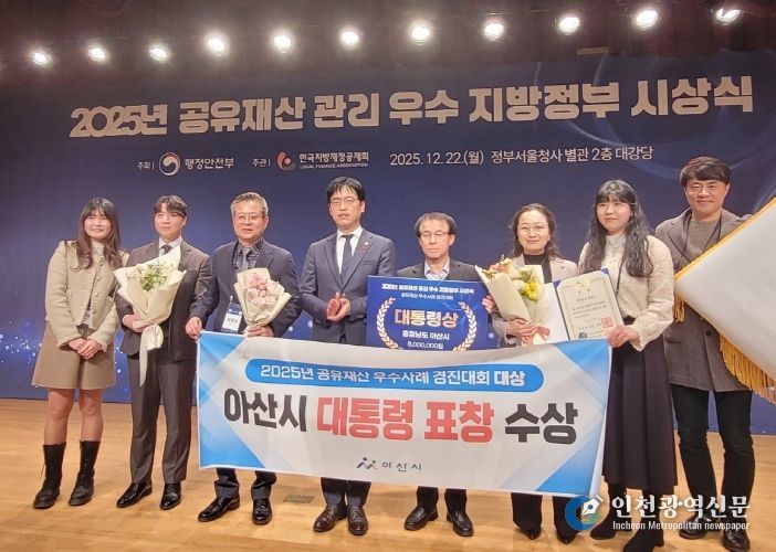 [인천광역신문] 박진 기자 | 아산시는 행정안전부가 주관한 ‘2025년 공유재산 우수 지방자치단체 시상식’에서 우수사례 경진대회 부문 전국 1위에 해당하는 대통령상을 수상했다고 22일 밝혔다.