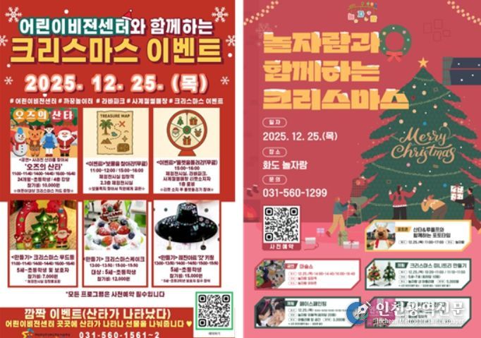[인천광역신문] 박진 기자 | 남양주시는 크리스마스를 맞아 어린이비전센터와 상상N놀이터에서 어린이와 가족이 함께 즐길 수 있는 다양한 체험과 공연, 이벤트 프로그램을 운영한다고 22일 밝혔다.
