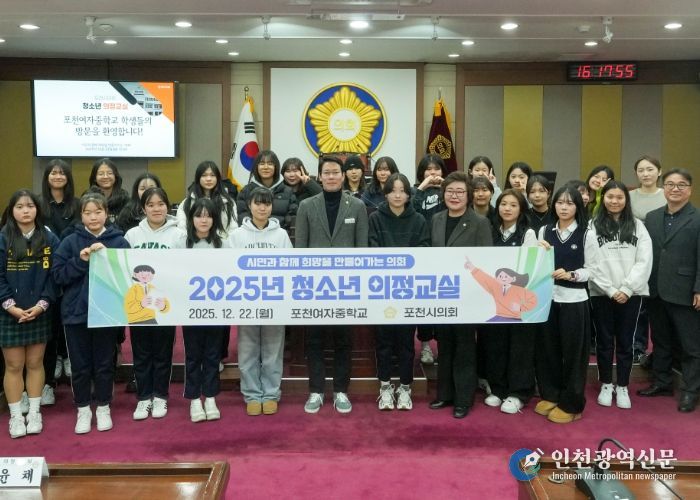[인천광역신문] 박진 기자 | 포천시의회는 22일 포천시의회 본회의장에서 포천여자중학교 학생 30여 명을 대상으로 ‘포천시의회 청소년 의정교실’을 개최했다.