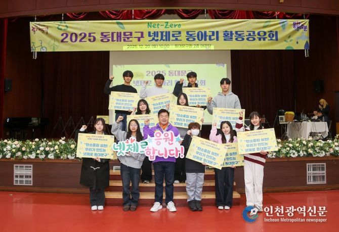 [인천광역신문] 박진 기자 | 서울 동대문구가 청소년이 주도하는 탄소중립 실천을 ‘성과 공유’와 ‘확산’으로 이어가는 자리를 마련했다. 동대문구는 지난 20일 관내 초·중·고 학생으로 구성된 넷제로(탄소중립) 동아리가 한자리에 모여 1년간의 활동을 나누는 '2025 넷제로 동아리 활동 공유회'를 열고 행사를 성황리에 마무리했다고 밝혔다.