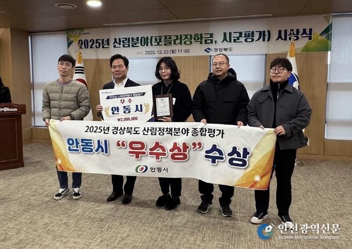 [인천광역신문] 박진 기자 | 안동시는 경상북도가 실시한 2025년 ‘산림분야 종합평가’에서 산림정책 분야 ‘우수’, 산림소득 분야 ‘장려’를 수상하며 산림행정 전반의 추진 성과와 실행력을 인정받았다.