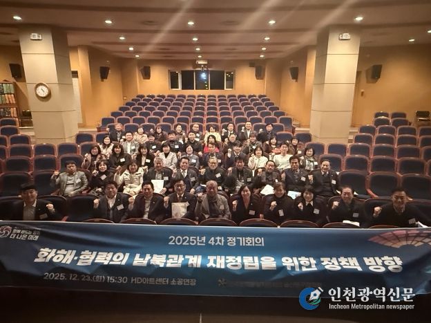 [인천광역신문] 박진 기자 | 민주평화통일자문회의 울산동구협의회(회장 장예식)는 12월 23일 오후 3시 30분 HD아트센터 소공연장에서 자문위원 등 50여 명이 참석한 가운데 ‘화해·협력의 남북 관계 재정립을 위한 정책 방향’을 주제로 2025년 4차 정기 회의를 개최했다.