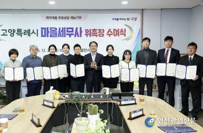 이날 위촉된 고양시 제6기 마을세무사는 총 40명으로, 향후 동별로 지정돼 영세자영업자 등 세무사 상담 이용이 어려운 주민을 대상으로 2026년부터 2027년까지 2년간 무료 세무상담 등을 실시하게 된다.