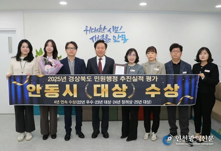 [인천광역신문] 박진 기자 | 안동시는 2025년 한 해 동안 시민 중심의 민원 서비스 제공과 지역 공동체 활성화를 목표로 다양한 시책을 추진한 결과, 민원행정과 자원봉사 분야에서 우수한 평가를 받았다.
