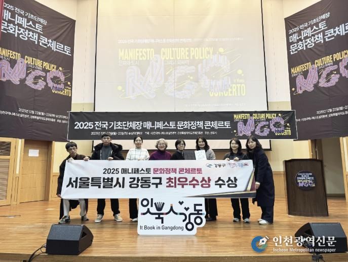 [인천광역신문] 박진 기자 | 서울 강동구는 23일 열린 ‘2025 매니페스토 문화정책 콘체르토’에서 ‘문화기반 도시활력 분야’ 최우수상을 수상했다고 밝혔다.