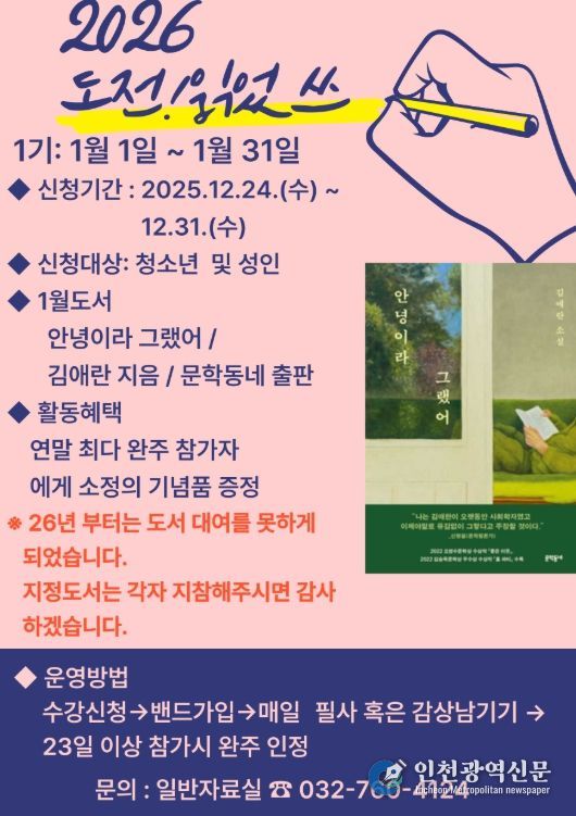 [인천광역신문] 박진 기자 | 인천광역시교육청화도진도서관은 비대면 독서·필사 동아리 ‘2026 도전! 읽었쓰’를 운영한다