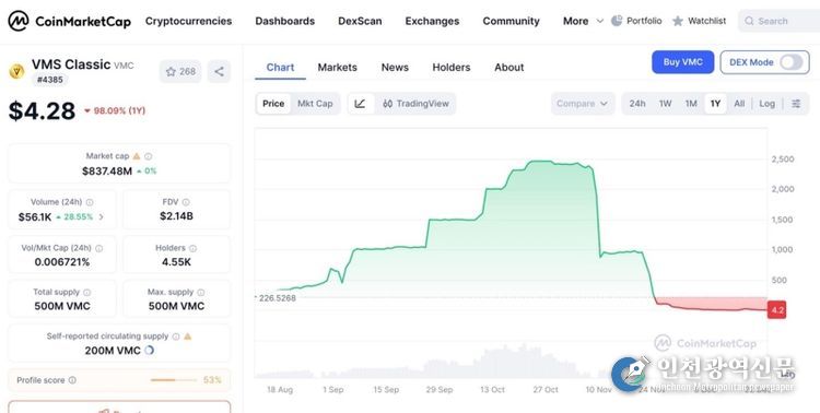 이 또한 회사내부직원의 지인에게 담보로서의 VMC코인 상당량을 맡겼지만 이를 어기고 LBank 에서 수억원어치의 VMC를 불법매도하여 적발이 되고 결국 계정이 정지됐고 또 따른 월렛계정에서 재차 불법매도하게 되어 10월말에 빅토리아 거래소가 “출금정지” 처분을 받게 된 것이다. 빅토리아 거래소는 VMS재단의 주주로서 VMC코인을 내부에 상장시키고 VMC코인 많은 양을 보유하고 있는것으로 알려졌다.