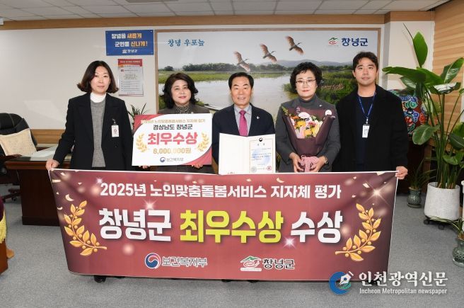 [인천광역신문] 박진 기자 | 창녕군은 보건복지부 주관 ‘2025년 노인맞춤돌봄서비스 평가’에서 최우수상을 수상했다고 24일 밝혔다.