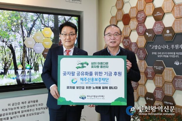 [인천광역신문] 박진 기자 | 제주신용보증재단은 지난 12월 23일 제주곶자왈공유화재단에 곶자왈 공유화 기금 200만원을 전달하며, 지역 환경 보전과 사회적 가치 실현을 위한 공공기관의 사회공헌 활동을 이어갔다