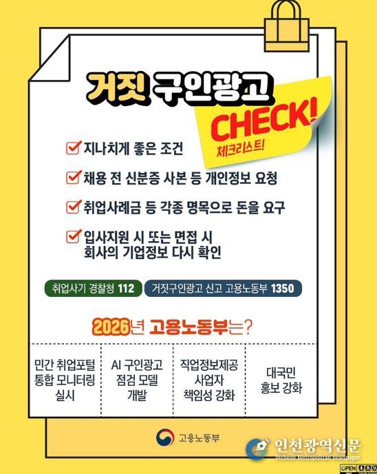 [인천광역신문] 박진 기자 | ■ 거짓 구인광고 체크리스트!