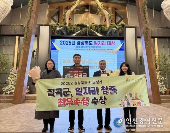 [인천광역신문] 박진 기자 | 칠곡군은 경상북도가 실시한 2025년 시군 일자리창출 추진실적 평가에서 종합실적 부문 최우수 시군으로 선정되는 영예를 안았다.