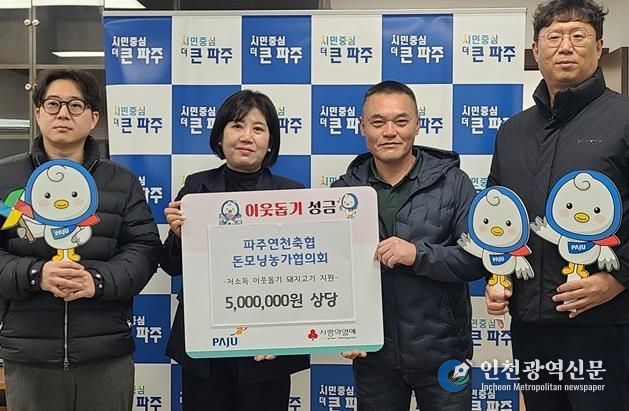 [인천광역신문] 박진 기자 | 파주시는 23일 파주연천축협 돈모닝농가협의회로부터 관내 저소득 취약계층을 위한 돼지고기 200kg(500만 원 상당)를 기탁 받았다고 밝혔다.