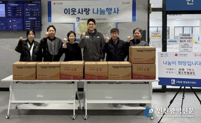 [인천광역신문] 박진 기자 | 수원시 팔달구 고등동은 12월 24일, 관내 퍼스트 태권도장에서 연말을 맞아 어려운 이웃을 위해 라면을 기부했다고 밝혔다.