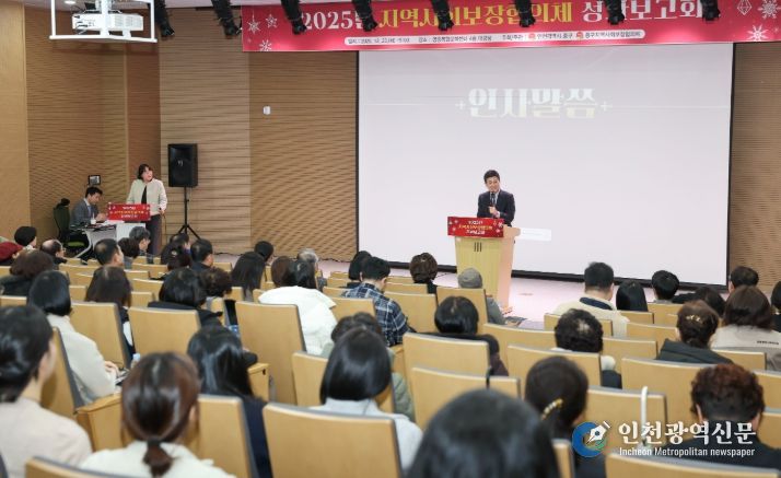 [인천광역신문] 박진 기자 | 인천시 중구는 지난 23일 영종복합문화센터 문화복지동 대강당에서 김정헌 중구청장, 중구의회 의원, 협의체 위원 등 110여 명이 참석한 가운데, ‘2025년 지역사회보장협의체 성과보고회’를 개최했다.